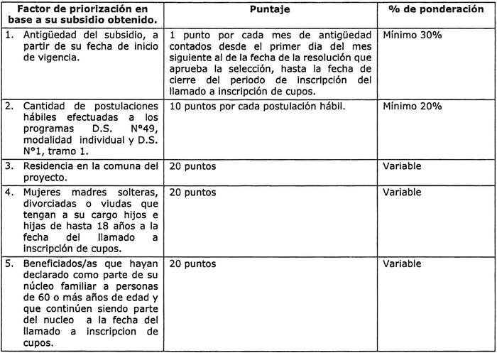 4. En caso de que dos o más beneficiarios empaten en puntaje, se dará prioridad al beneficiario con mayor puntaje en el punto 1 de la tabla de factores de priorización. De mantenerse el empate se dará prioridad al beneficiario con mayor puntaje en el punto 2 y así sucesivamente hasta llegar al punto 5, a partir de lo cual se dirimirá por sorteo.