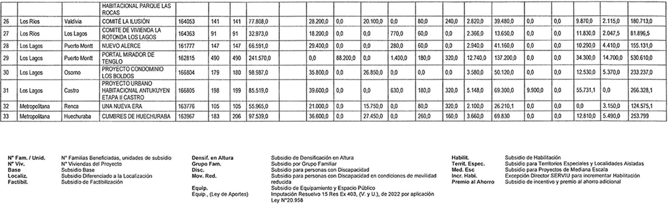"3. Los montos de subsidios asignados mediante la presente resolución, ascendentes a 6.685.102,07 Unidades de Fomento, se imputarán a los recursos dispuestos para el año 2022, para el Programa Fondo Solidario de Elección de Vivienda de las Regiones de Coquimbo, Valparaíso, O'Higgins, Maule, Ñuble, Biobío, Araucanía, Los Ríos, Los Lagos y Metropolitana, según el siguiente detalle: