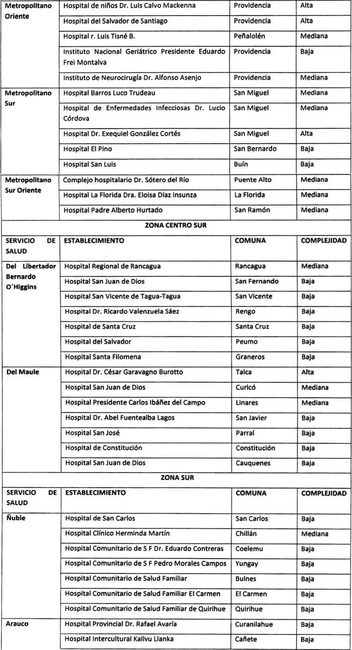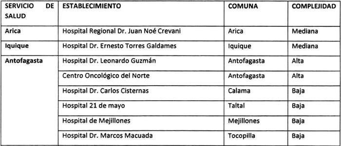 2.- Que, el artículo 6 de la ley N° 21.258, que crea la Ley Nacional del Cáncer, que rinde homenaje póstumo al doctor Claudio Mora, señala que la "Red Oncológica Nacional constará de centros especializados, que serán parte de la Red Asistencial de Salud, cuyo propósito será el diagnóstico, tratamiento y seguimiento de los pacientes con cáncer. Los centros se podrán categorizar en Alta, Mediana y Baja Complejidad". Agrega luego que "Un reglamento expedido a través del Ministerio de Salud determinará qué establecimientos de salud podrán tener dicha categorización, los estándares mínimos que deberán cumplir los centros señalados y las zonas geográficas que quedarán cubiertas por cada uno de los centros, correspondiendo éstas al menos a: Zona Norte, Zona Central, Región Metropolitana de Santiago, Zona Centro Sur y Zona Sur".