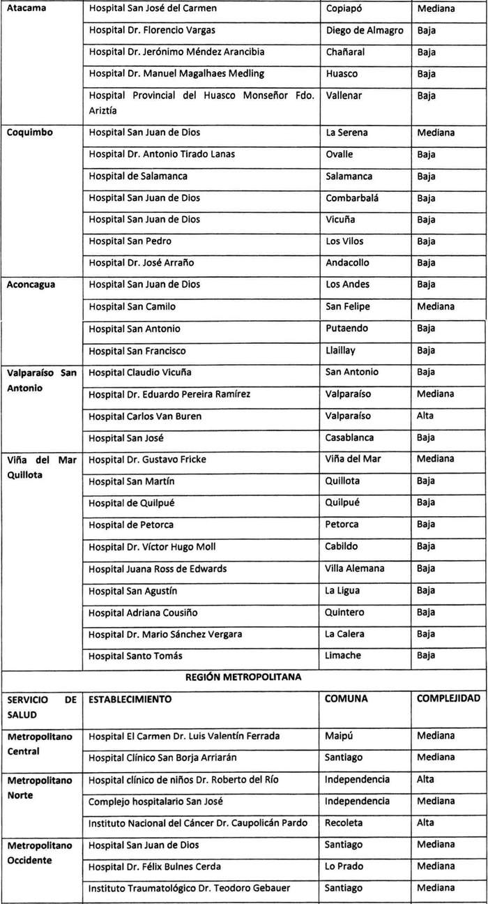 - Centro de referencia pediátrico (específicamente en los hospitales pediátricos de la Región Metropolitana).