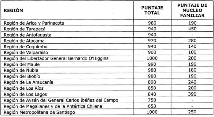 c) Que, conforme lo establecido en los artículos 22, 23 y 24 del DS N° 49 (V. y U.), de 2011, y en el resuelvo 7 de la resolución exenta N° 1.440 (V. y U.), de 2022 y practicada la evaluación de los postulantes, han resultado los siguientes puntajes de corte regional, interesando para efectos de dirimir la prelación de los postulantes, los factores de: Puntaje Total para las regiones de Antofagasta, Aysén y Magallanes, mientras que Puntaje de Núcleo Familiar para las regiones Arica y Parinacota, Tarapacá, Atacama, Coquimbo, Valparaíso, O'Higgins, Maule, Ñuble, Biobío, La Araucanía, Los Ríos, Los Lagos y Metropolitana de Santiago, en orden de importancia: