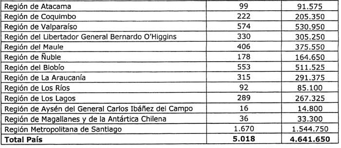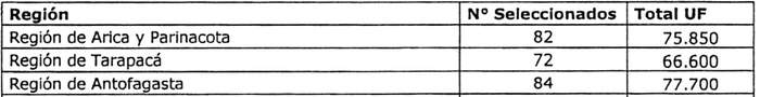 3. Que, los recursos comprometidos conforme al Resuelvo 1. de la presente resolución, para los postulantes seleccionados en el Llamado de resolución exenta N° 1.440 (V. y U.), de 2022, se detallan en el siguiente cuadro para cada región convocada, considerando el monto de subsidio promedio individual definido para efectos de la imputación en el Resuelvo 11 de la citada resolución: