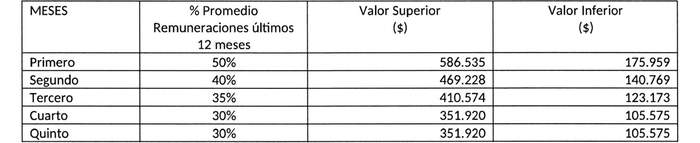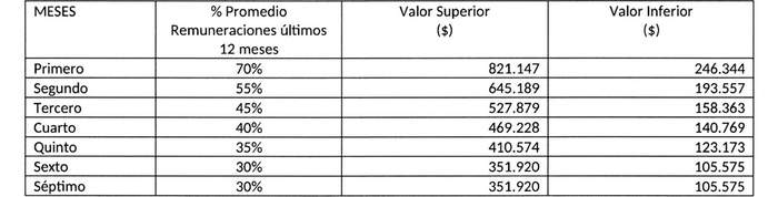 TABLAS CON VALORES SUPERIORES E INFERIORES A QUE SE REFIERE EL ARTÍCULO 25 DE LA LEY N° 19.728, PARA LA DETERMINACIÓN DEL MONTO DE LAS PRESTACIONES CON CARGO AL FONDO DE CESANTÍA SOLIDARIO