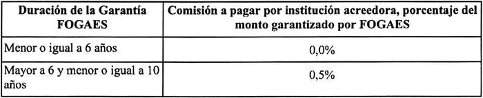 El Administrador del Fondo fijará la comisión que pagarán las instituciones acreedoras, de acuerdo con el siguiente criterio, como porcentaje sobre el monto de la garantía Fogaes, el que se pagará en forma anticipada, y por una sola vez, de acuerdo con los siguientes tramos: