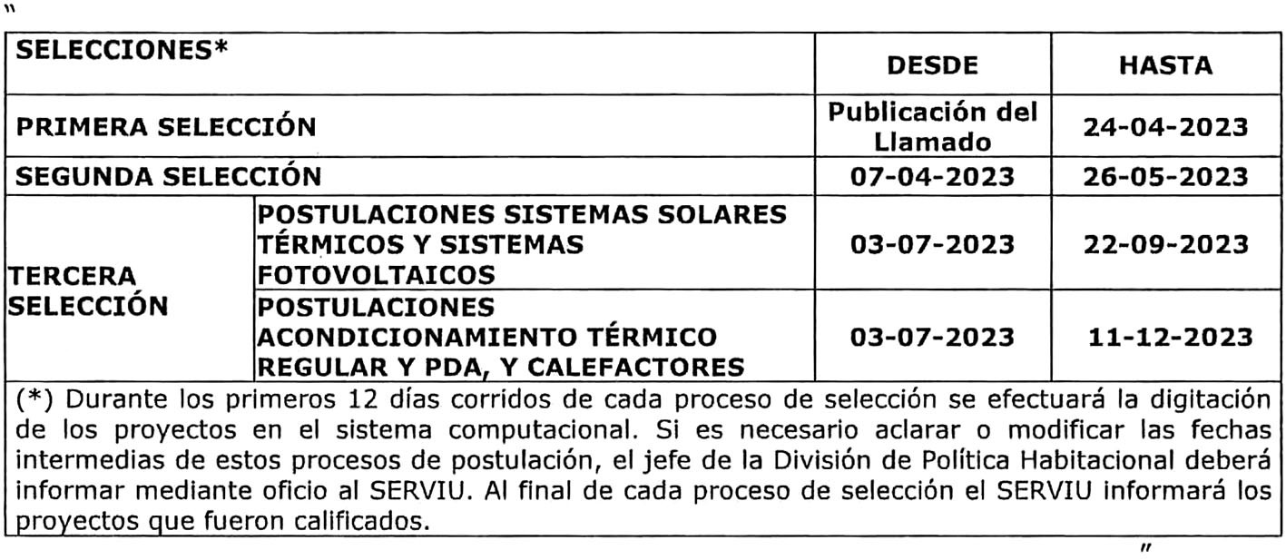 LLAMADO A POSTULACIÓN EN CONDICIONES ESPECIALES AÑO 2023, PARA EL DESARROLLO DE PROYECTOS DEL PROGRAMA DE PROTECCIÓN DEL PATRIMONIO FAMILIAR CORRESPONDIENTES AL TÍTULO II, MEJORAMIENTO DE LA VIVIENDA, DESTINADOS A OBRAS DE INNOVACIONES DE EFICIENCIA ENERGÉTICA Y DE ACONDICIONAMIENTO TÉRMICO DE VIVIENDAS, PARA LAS REGIONES ARICA Y PARINACOTA, TARAPACÁ, ANTOFAGASTA, ATACAMA, COQUIMBO, VALPARAÍSO, METROPOLITANA, O'HIGGINS, MAULE, ÑUBLE, BIOBÍO, LA ARAUCANÍA, LOS RÍOS Y LOS LAGOS, Y FIJA LA CANTIDAD DE RECURSOS QUE SE DESTINARÁN AL FINANCIAMIENTO DE DICHOS SUBSIDIOS