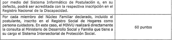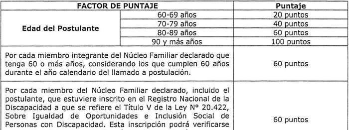 6. Dispónese que, junto con los factores de puntaje dispuestos en el artículo 25 del DS N° 52 (V. y U.), de 2013, se otorgará un puntaje adicional conforme lo señala la siguiente tabla:
