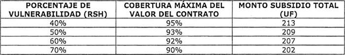 7. El valor máximo del subsidio destinado a cada beneficiado se definirá conforme al porcentaje de vulnerabilidad indicado en su Registro Social de Hogares, acreditado al postular. En consecuencia, los montos máximos de subsidios que se otorgarán son los definidos en la siguiente tabla: