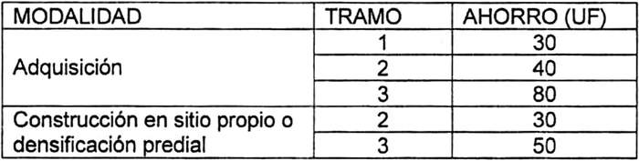 6°.- Para postular al presente llamado, los postulantes, sus cónyuges o convivientes civiles deberán acreditar que cumplen con el siguiente ahorro mínimo exigido para el tramo y modalidad a que postulen: