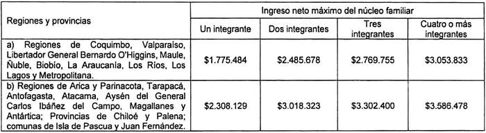 10°.- En el caso de familias postulantes al tramo 3 que estén sobre el 90% más vulnerable de la población, de conformidad con la información que se obtenga de la aplicación del Instrumento de Caracterización Socioeconómica vigente, el núcleo familiar declarado en la postulación no podrá tener ingresos netos (ingreso bruto menos impuestos e imposiciones), que excedan de los que a continuación se detallan, en función del número de integrantes del núcleo familiar declarado: