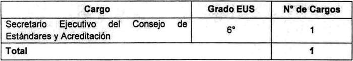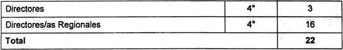 A. Director/a Nacional, Subdirector Técnico, Subdirector Administrativo, Director/a, Directores/as Regionales, Secretario Ejecutivo del Consejo de Estándares y Acreditación: