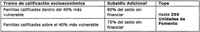 De resultar insuficientes los recursos señalados para la compra del terreno, el remanente por pagar se prorrateará entre los postulantes, quienes lo financiarán a través de un subsidio adicional cuyo monto y tope se calculará de la siguiente forma, y de un monto de ahorro adicional hasta completar el valor total: