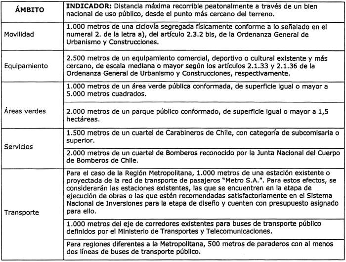 ii. Que el terreno se encuentre a una distancia no superior a 200 metros de una vía de servicio o de rango superior existente, y con acceso directo a ella a través de una vía cuya urbanización esté ejecutada al 100%, o que considere su ejecución al 100% como parte del proyecto presentado. Excepcionalmente, se podrán considerar terrenos que se encuentren a una distancia no superior a 200 metros de una vía local existente, siempre y cuando cumplan además con a lo menos 4 de los siguientes ámbitos: