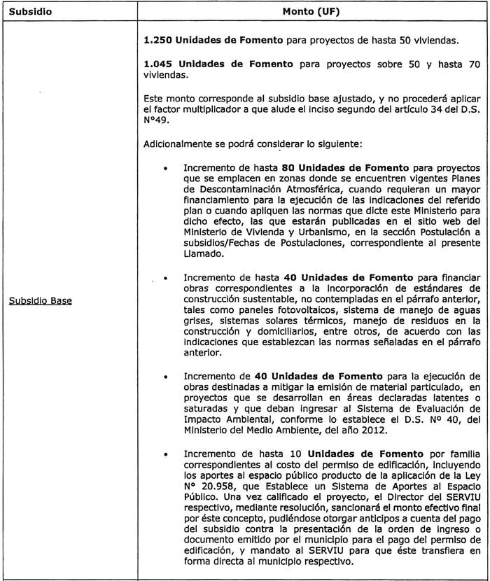 2) Se aplicará un subsidio inicial destinado a la adquisición del terreno, de hasta 250 Unidades de Fomento por postulante.
