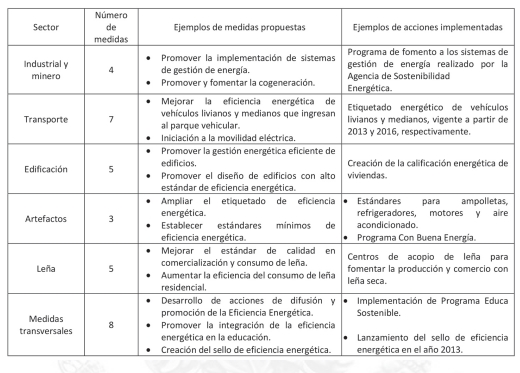Las medidas de eficiencia energética presentadas en este Plan han sido evaluadas para calcular su costo-efectividad. Por una parte, se ha realizado el ejercicio de estimar los ahorros que se generan para cada una de ellas, y luego se evalúan los beneficios que genera el ahorro de esa energía. Estos beneficios económicos se contrastan con los costos e inversiones requeridas para su implementación.