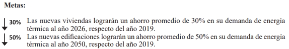 Las nuevas edificaciones lograrán un ahorro promedio de 50% en su demanda de energía térmica al año 2050, respecto del año 2019.