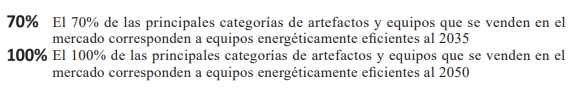 El 100% de las principales categorías de artefactos y equipos que se venden en el mercado corresponden a equipos energéticamente eficientes al año 2050.