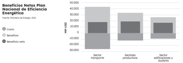 Considerando como horizonte el año 2050, el costo total de la implementación de las medidas del Plan es de aproximadamente 47 mil millones de dólares, mientras que los beneficios por el ahorro que dichas medidas generan son del orden de los 102 mil millones de dólares. Es decir, el Plan genera un beneficio neto del orden de los 55 mil millones de dólares.