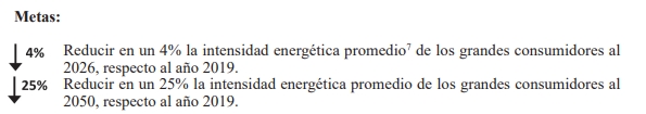 En el caso de los sectores productivos, se utilizará como indicador de seguimiento la información de intensidad energética que deben informar anualmente los grandes consumidores de energía al Ministerio de Energía en conformidad con la Ley 21.305. Este indicador se obtendrá en unidades de energía por ventas monetizadas reajustadas, indicador que permitirá obtener estadísticas agrupadas para todos los sectores productivos.