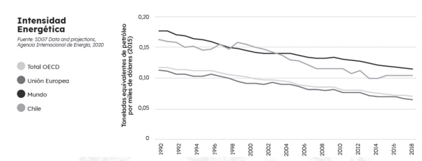 Adicionalmente, se considerará el indicador intensidad energética calculada como el consumo total de los sectores productivos sobre el valor agregado bruto de cada actividad, lo que permitirá además una comparación con otros mercados a nivel internacional.