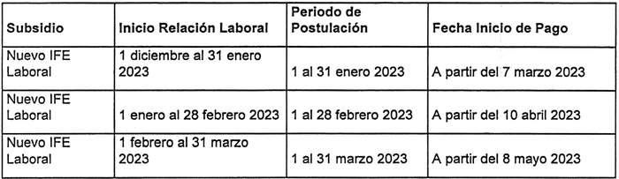 c) Reemplázase en el inciso primero de la letra e) "Periodo de postulación y otorgamiento del beneficio", la siguiente frase "hasta el 31 de diciembre de 2022, el que se devengará por un máximo de tres meses, sin que dicho devengo pueda exceder del 30 de septiembre de 2022" por la siguiente "hasta el 31 de marzo de 2023, el que se devengará por un máximo de tres meses, sin que dicho devengo pueda exceder del 31 de marzo de 2023".