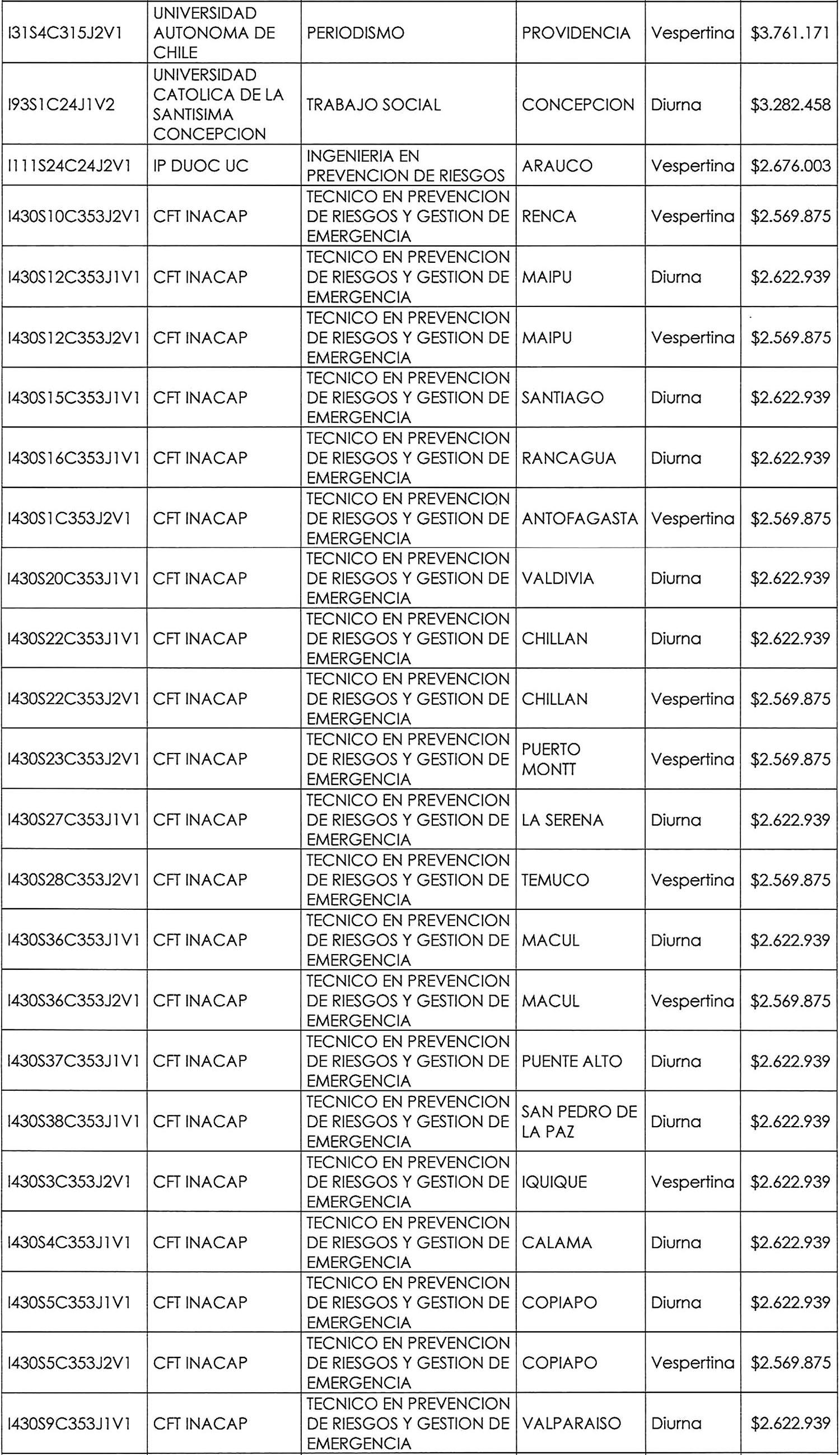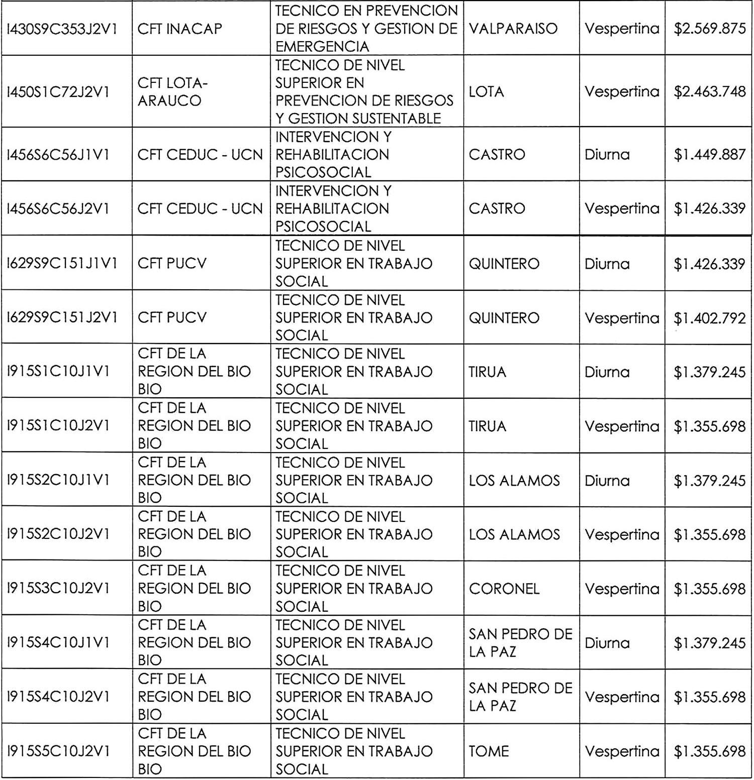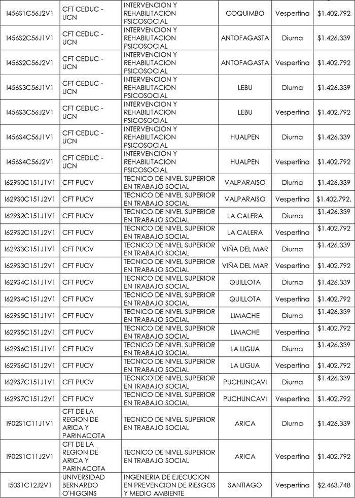 11º. Que la Resolución Exenta N° 6.255, de 2022, define como "carrera" para efectos de esta regulación un programa de estudios actualmente vigente, impartido en modalidad presencial, conducente a un título técnico de nivel superior, título profesional (con o sin licenciatura) o licenciatura no conducente a título profesional, incluyendo también programas de formación inicial general, tales como bachilleratos u otros equivalentes de conformidad al Artículo 105 de la Ley N° 21.091. Establece, asimismo, que este programa debe ser identificable a través del código único registrado en la base de datos del Servicio de Información sobre Educación Superior ("SIES") de la Subsecretaría de Educación Superior, considerando las variables institución, sede, carrera y jornada.