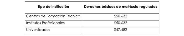 c) Los valores de derechos básicos de matrícula, expresados en pesos por estudiante, de conformidad a la resolución vigente a cada tipo de institución de educación superior, sin perjuicio de los reajustes que establece esta ley".