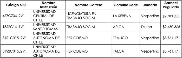 Asimismo, señala que los "Los valores de los aranceles regulados se determinarán en razón a "grupos de carreras" definidos por la Subsecretaría, los que corresponderán a conjuntos de carreras o programas de estudios que tengan estructuras de costo similares entre sí. Para ello, la Subsecretaría deberá considerar, al menos, los recursos que se requieran para impartirlas en razón de su estructura curricular, si se trata de carreras o programas de estudios profesionales o técnicos de nivel superior, los niveles, años y dimensiones de acreditación institucional con que cuentan las instituciones que las imparten, el tamaño de estas últimas y la región en que se imparten".