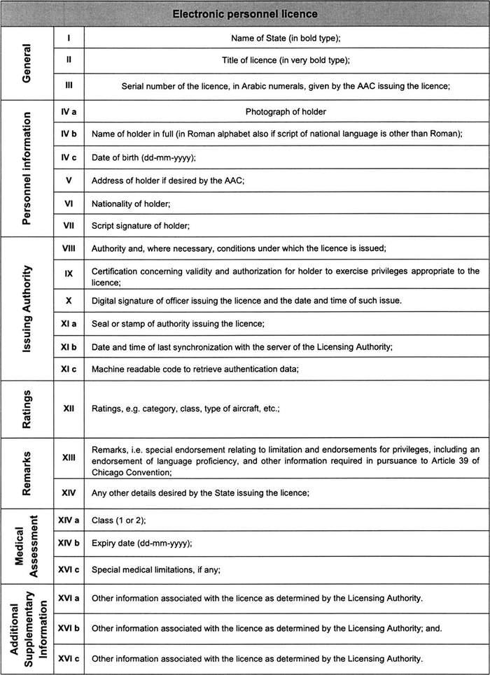 La licencia tendrá una presentación visual que reproduzca el texto y la disposición, en inglés, que se indica en el siguiente formulario común señalado por la OACI, el cual estará redactado en inglés de la siguiente forma: