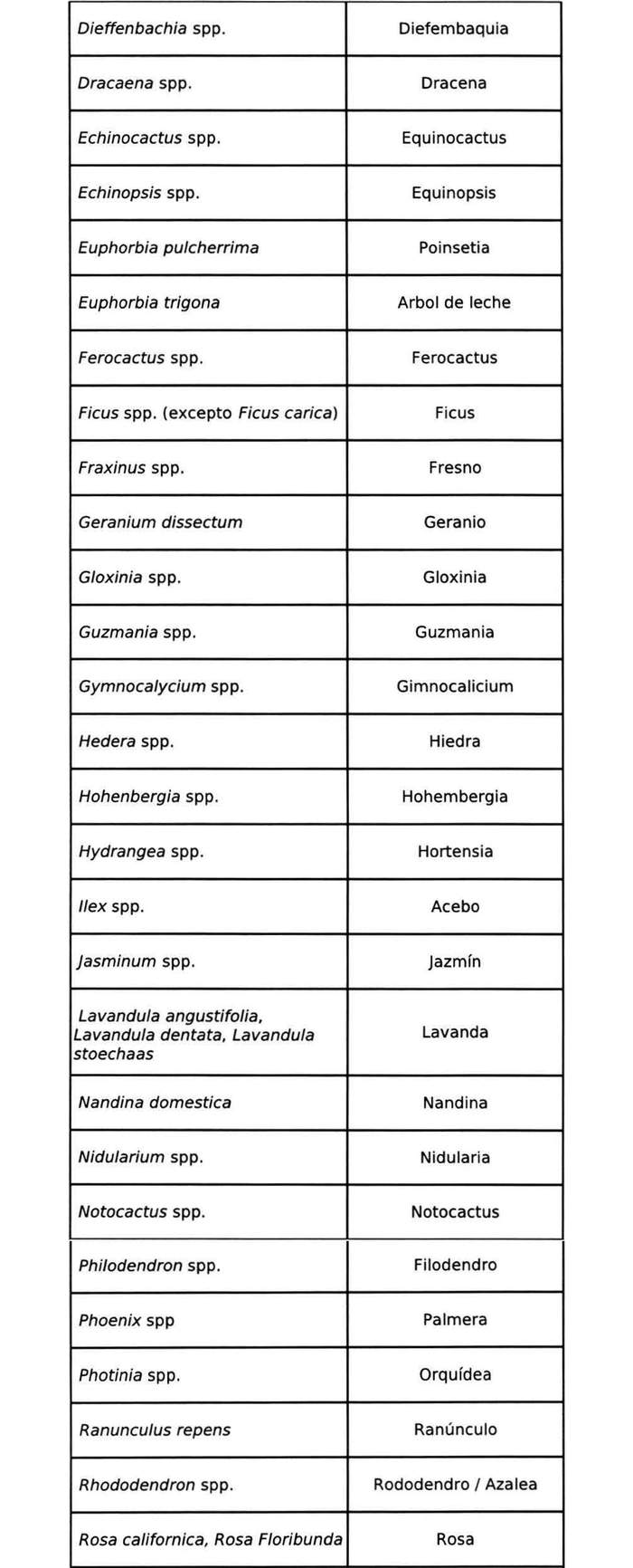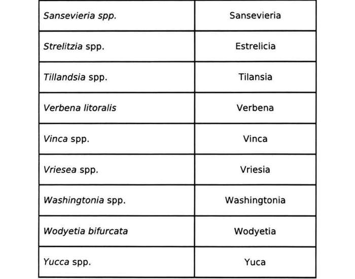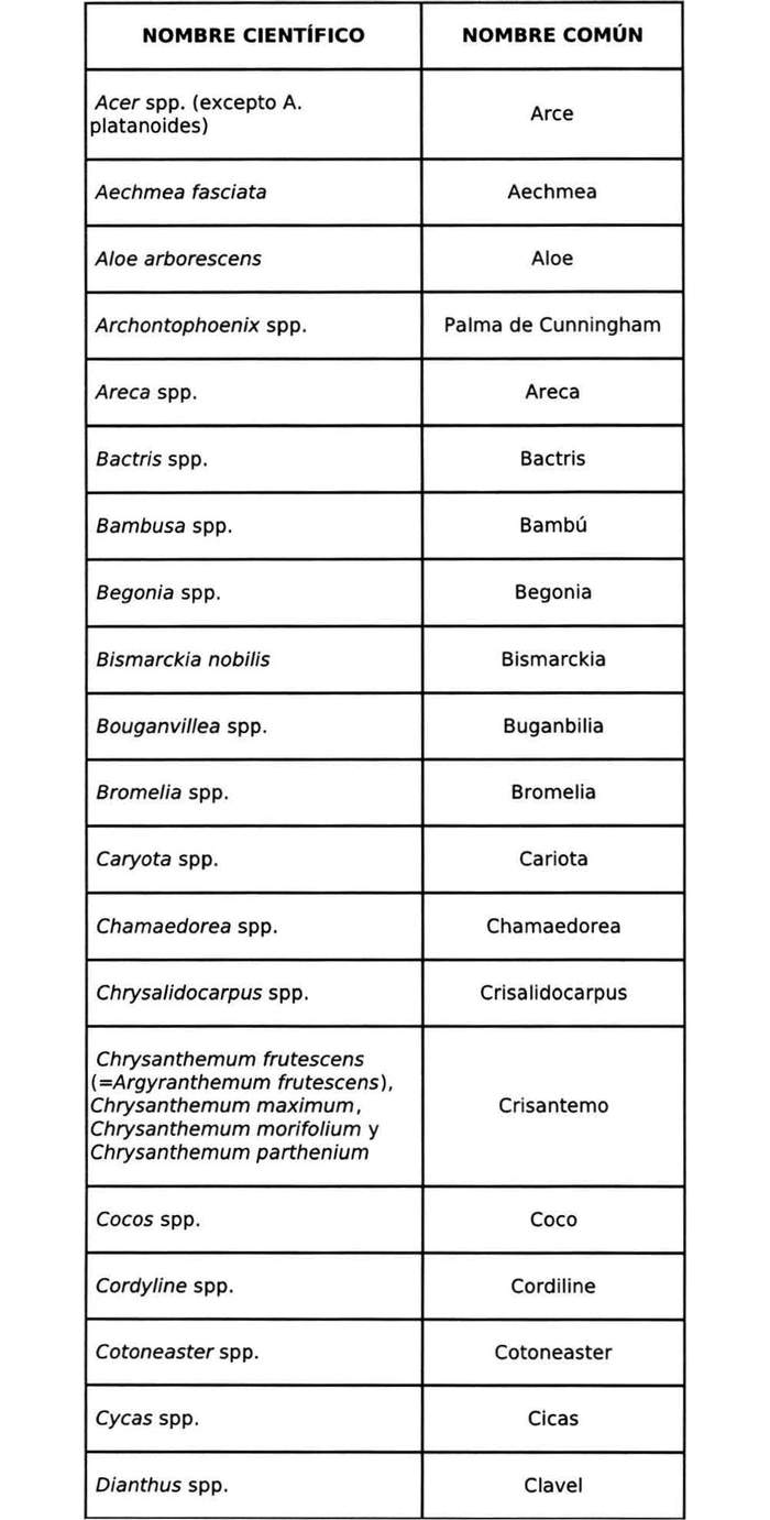 "a. Las plantas (excluido semillas y cultivo de material in vitro) de las siguientes especies vegetales, por el período de cuarentena establecido en la normativa vigente, para cada Nivel de Cuarentena:"