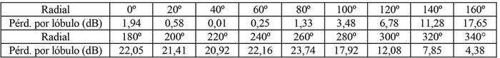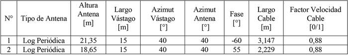 - Arreglo de antenas de acuerdo a la siguiente tabla: