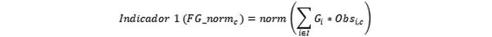 Lo anterior se expresará en la fórmula siguiente, donde "c" indica las comunas analizadas, "i" a los delitos DEL_FEM, Gi representará la gravedad normalizada para cada delito "i" y 0bs i/c a las observaciones de delitos "i" de la comuna "c".