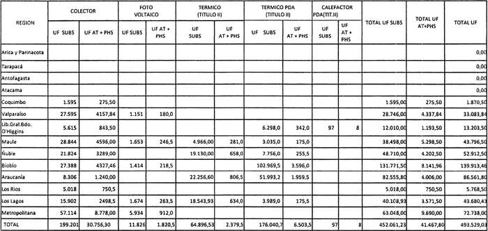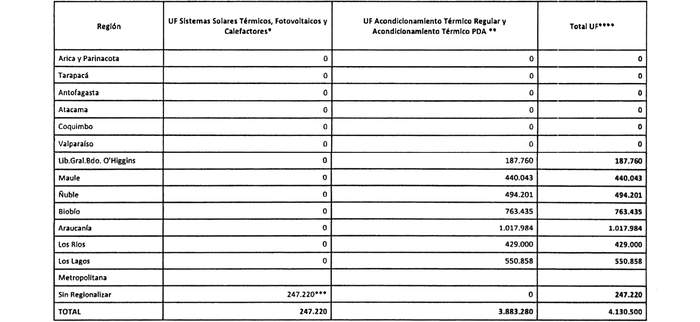 3. Comprométense los recursos disponibles para el primer proceso de postulación del Llamado Nacional en condiciones especiales para proyectos del Título II, Mejoramiento de la Vivienda, del Programa de Protección del Patrimonio Familiar, del año 2023, destinados a Proyectos de Obras de Innovación de Eficiencia Energética, de Acondicionamiento Térmico de Viviendas, tanto en su línea general como en el marco de los Planes de Descontaminación Atmosférica (PDA), los que se destinarán al financiamiento de los subsidios y al pago de los servicios de Asistencia Técnica, según la distribución por título y por región, señalada en el siguiente cuadro: