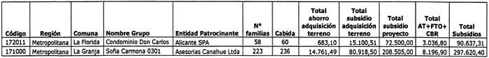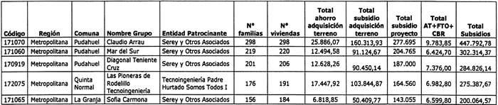 NÓMINA DE GRUPOS SELECCIONADOS - LLAMADO EFECTUADO MEDIANTE RESOLUCIÓN Nº 504 EXENTA (V. Y U.), DE 2022 SELECCIÓN COMPLEMENTARIA CIERRE 3 DE NOVIEMBRE DE 2022