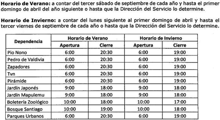 Con todo, el Servicio podrá por razones fundadas en el buen funcionamiento del parque o por la seguridad de los usuarios o de la infraestructura modificar transitoriamente estos horarios de apertura al público, sin necesidad de dictar un acto administrativo para tal efecto, debiendo comunicar al público el horario a través de los distintos canales informativos existentes.