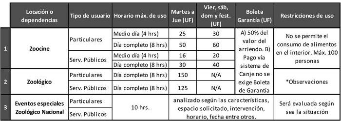 *El valor de arriendo del Zoocine incluye el cobro de IVA. El resto de los arriendos asociados al zoológico son exentos de IVA de acuerdo a las indicaciones del SII.