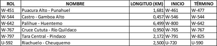 El numeral 1 de la Resolución 1690 Exenta, Obras Públicas, publicada el 09.07.2025 complementa la presente norma asignando rol a camino de uso público de la Provincia de Llanquihue de la Región de Los Lagos, de acuerdo a la tabla inserta de la citada norma.