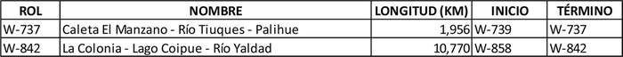 2. Modifícase el nombre, la longitud y el kilómetro de término de los caminos de uso público Rol W-737 y W-842 individualizados en la resolución DV (exenta) Nº 849 del 21/02/2018, quedando identificados según se indica a continuación: