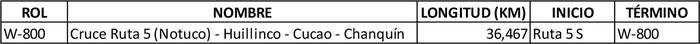 3. Modifícase la longitud y el kilómetro de término del camino de uso público Rol W-800 individualizado en la resolución DV (exenta) Nº 849 del 21/02/2018, quedando identificado según se indica a continuación: