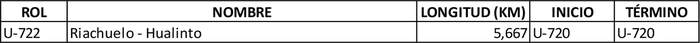 4. Modifícase la longitud y el kilómetro de término del camino de uso público Rol U-722 individualizado en la resolución DV (exenta) Nº 439 del 25/01/2017, quedando identificado según se indica a continuación: