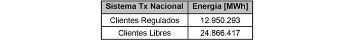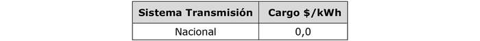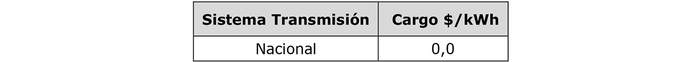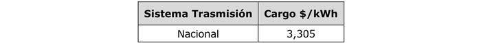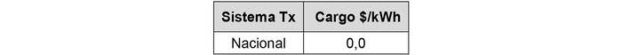 Tabla 3: Cargo asociado al segmento de transmisión nacional para clientes regulados y libres
