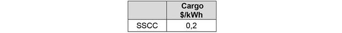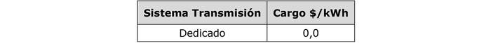 Tabla 2: Cargo asociado al segmento de transmisión dedicada utilizada por parte de usuarios sometidos a regulación de precios para clientes regulados