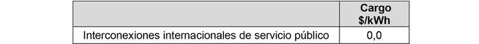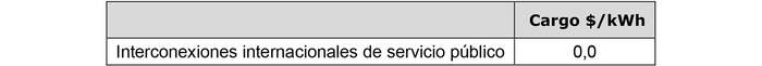 Tabla 8: Cargo asociado a interconexiones internacionales de servicio público para clientes regulados y libres