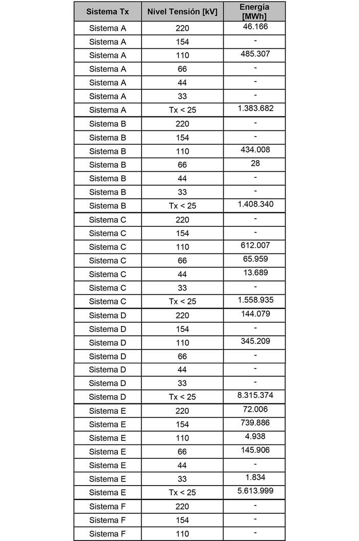 Además, cabe señalar que el saldo informado se encuentra distribuido por nivel de tensión, de acuerdo con una prorrata por VATT mensual.