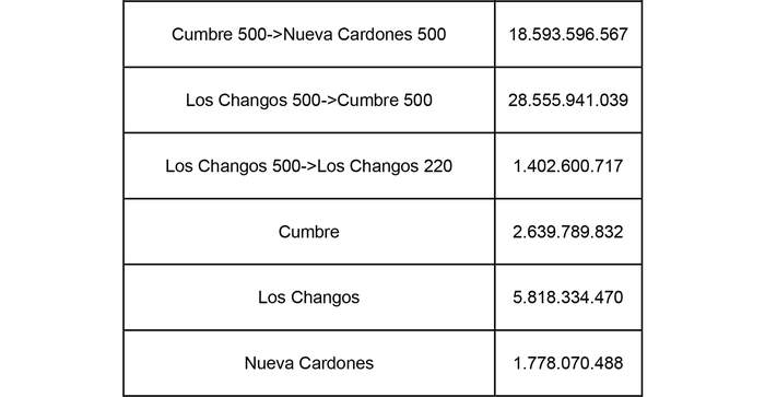 Tabla 23: Antecedentes para el cálculo de los cargos asociado a la Transmisión Nacional