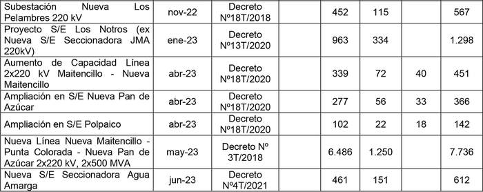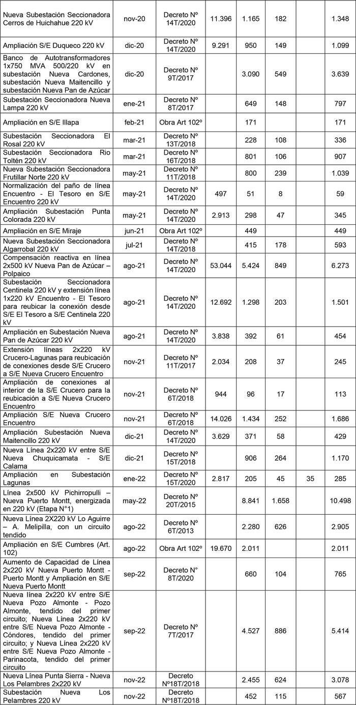 . Considera los ajustes por la variación del IPC, sólo de las instalaciones de transmisión contenidas en el decreto 7T de 2022, producto del retraso de dicho decreto. El detalle de la determinación de dicho saldo se presenta en el anexo N° 3 dentro de la carpeta "04_Saldo/ObrasNuevasSinAjuste".