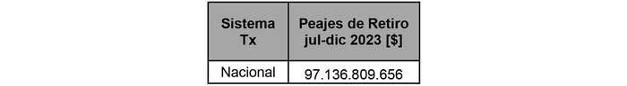Tabla 25: Cargo asociado a peaje de retiro de clientes no Individualizados