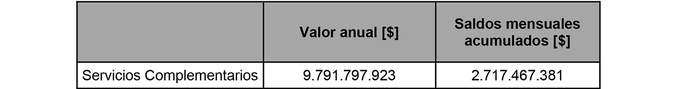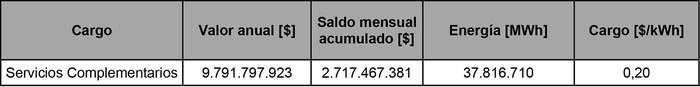 Tabla 6: Cargo asociado a infraestructura de servicios complementarios
