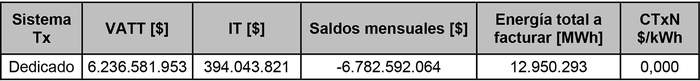Tabla 22: Saldo asociado al cargo de transmisión dedicada utilizada por clientes regulados