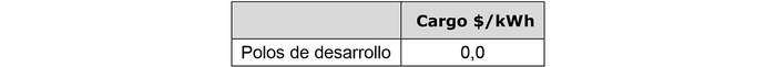 Tabla 7: Cargo asociado a e los sistemas de transmisión para polos de desarrollo para clientes regulados y libres
