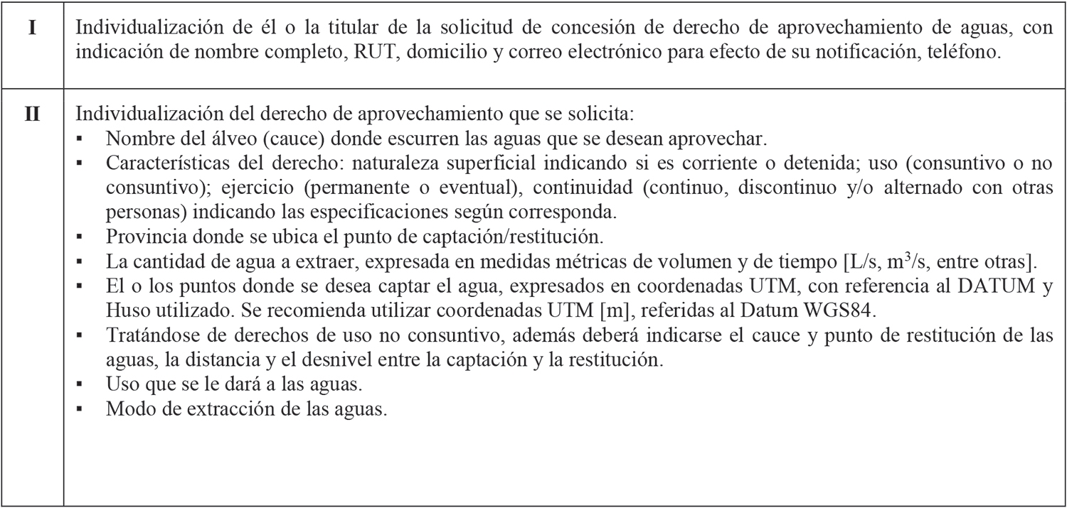 Requisitos específicos mínimos para la presentación de la solicitud de concesión de derecho de aprovechamiento de naturaleza superficial